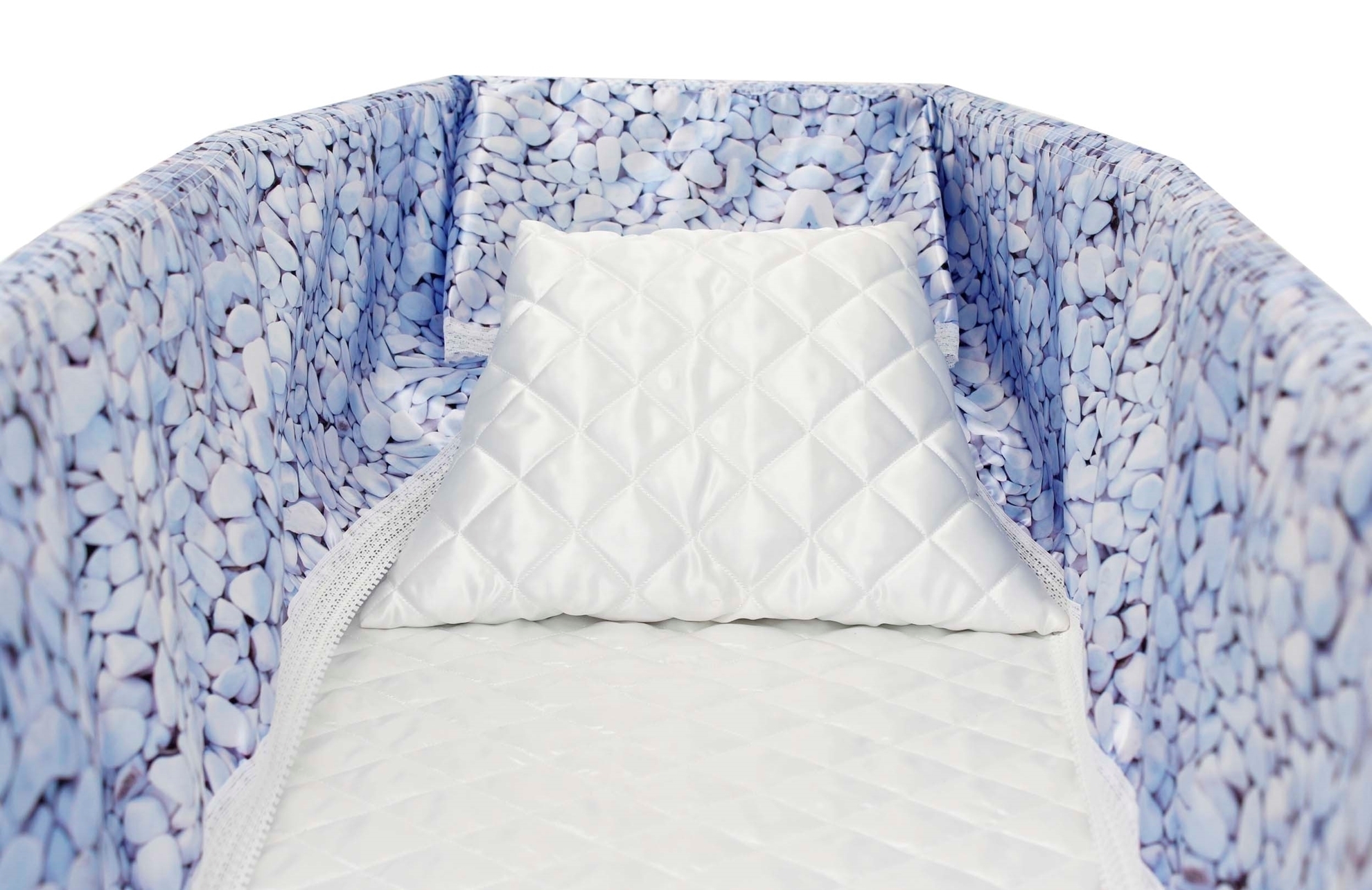 Luxury Satin 18-inch 2-way frill consisting of a 12-inch internal frill with an additional 6-inch exterior frill. The chosen design will be printed on the 18" 2-Way Frill. Please note the image shows a mattress and a pillow which are NOT included. Image is to illustrate style of Interior Only.