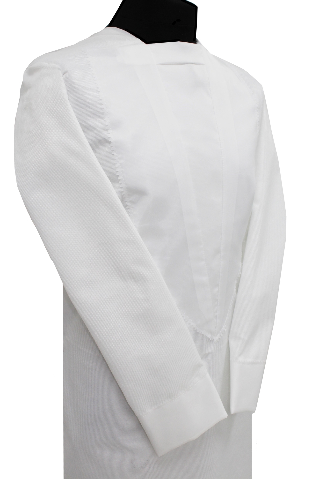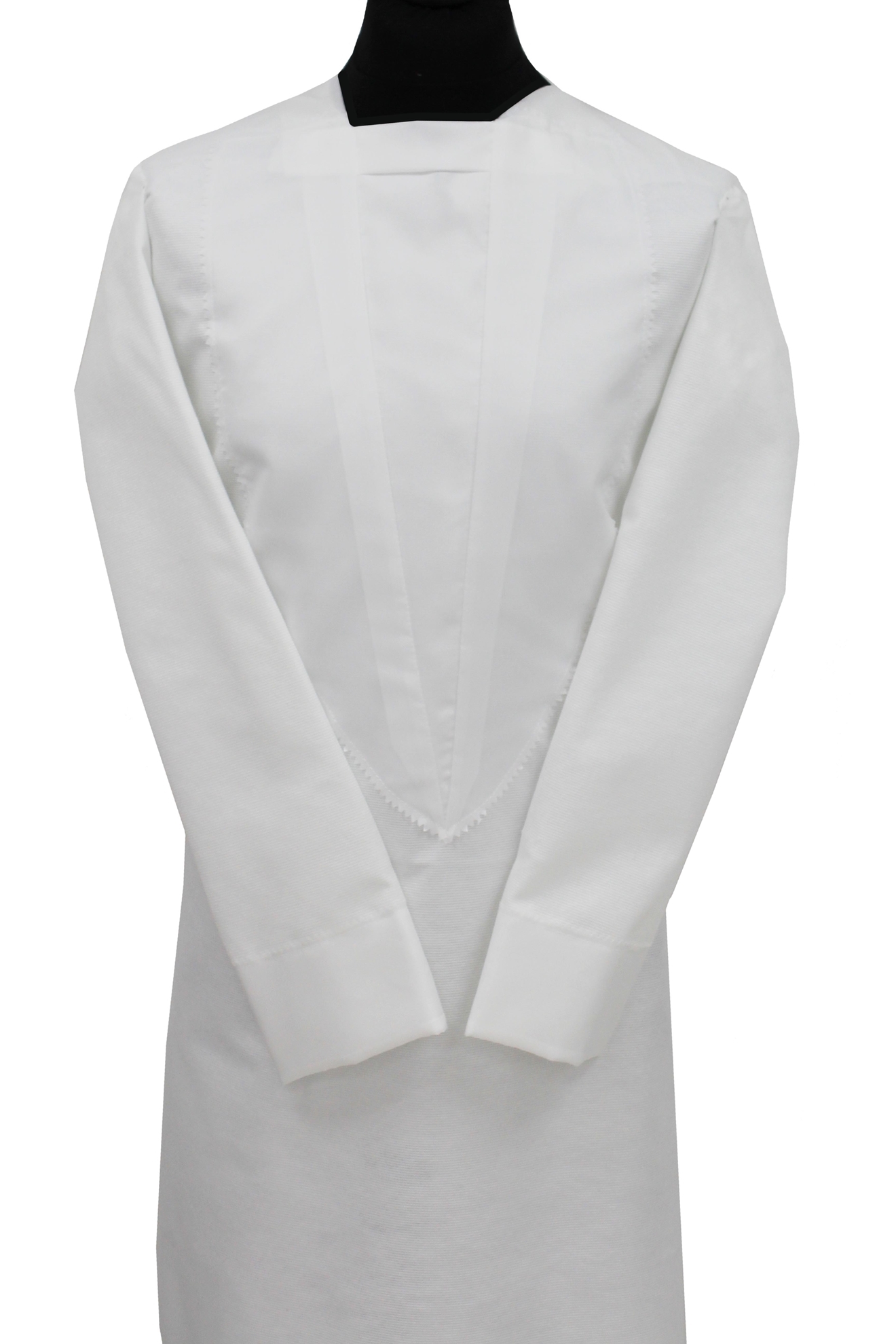 Stitched Bonded Unisex Closing Gown in White with an option of No Frill, a 6", 9" or 12" Frill.
