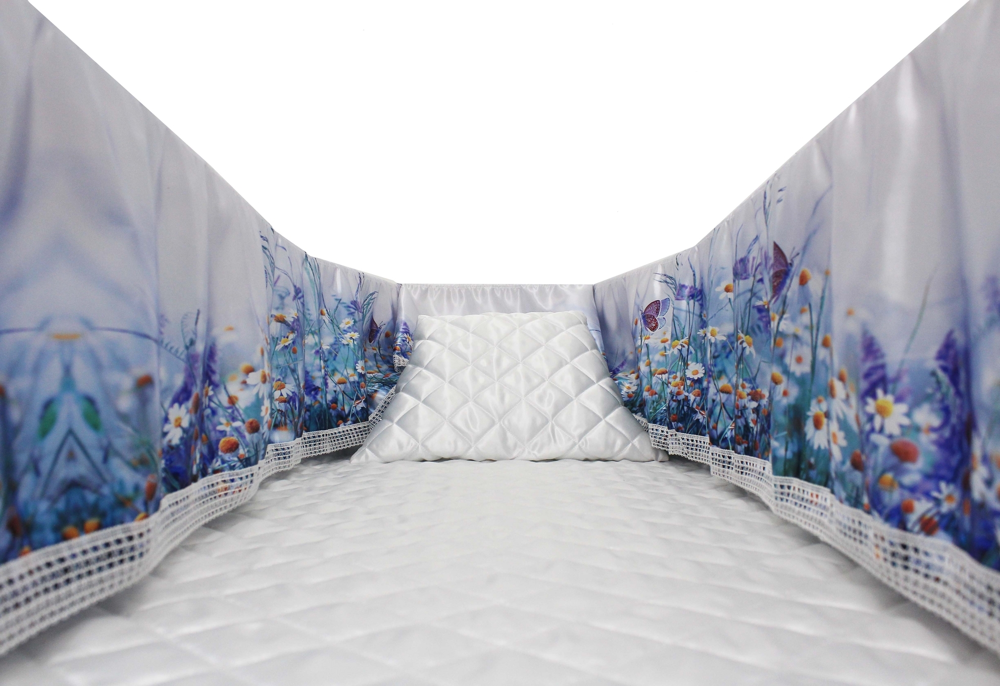 12-inch Printed Satin frill to be attached to the lip of the coffin/casket. Please note the image shows a mattress and pillow which are NOT included.