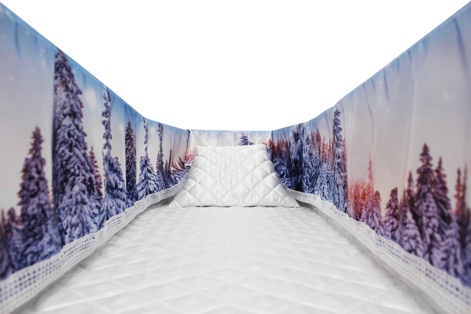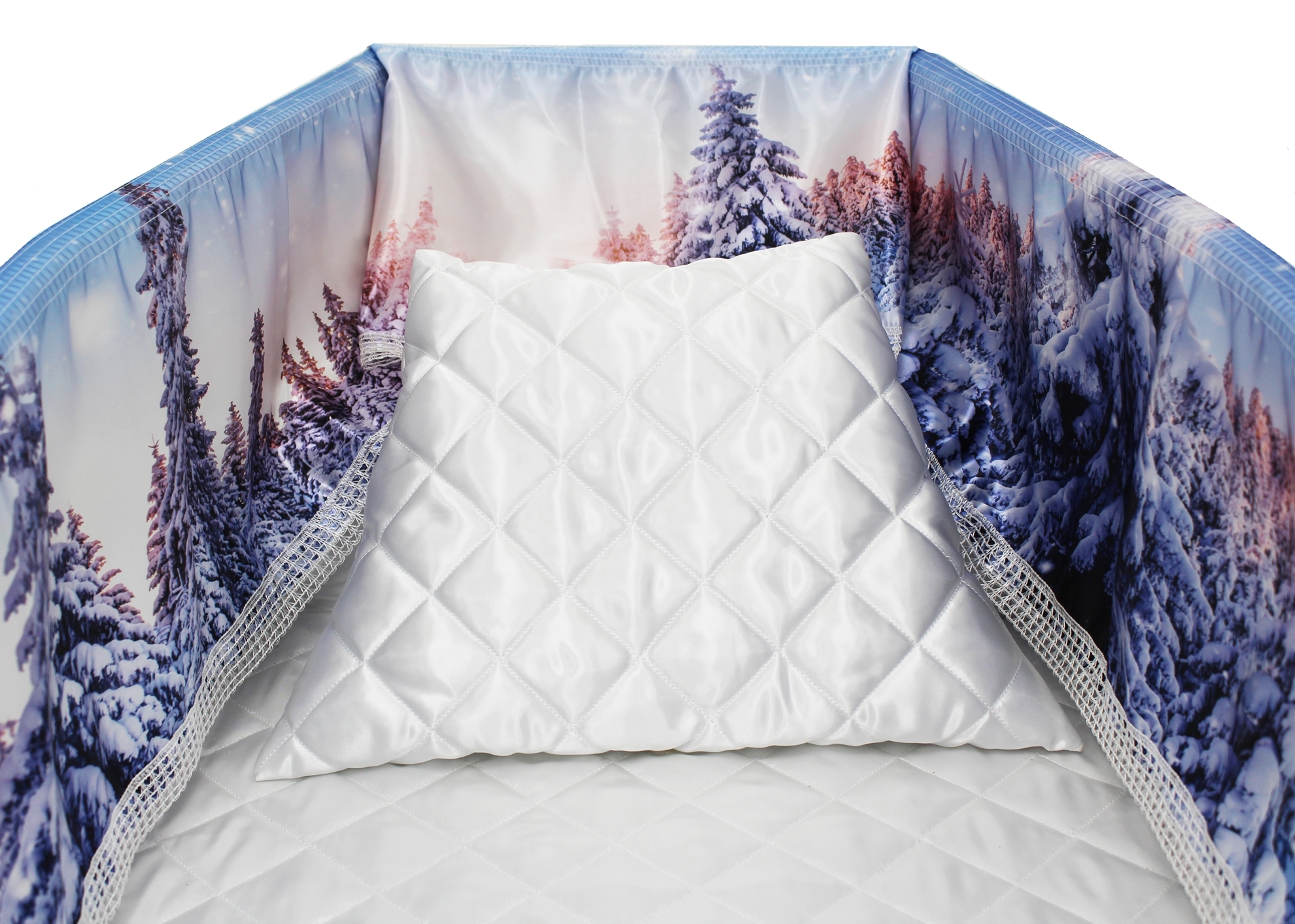 12-inch Printed Satin frill to be attached to the lip of the coffin/casket. Please note the image shows a mattress and pillow which are NOT included.