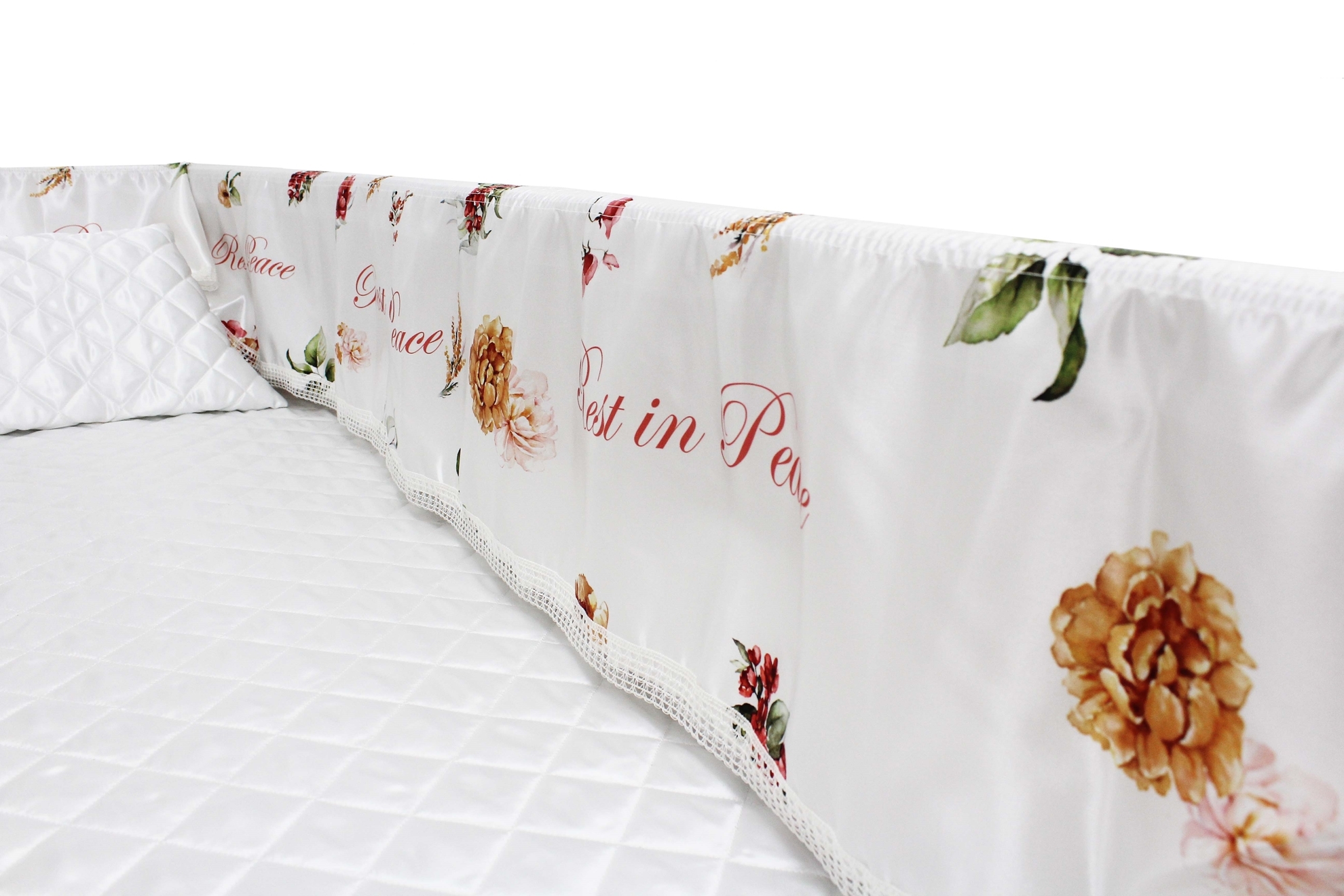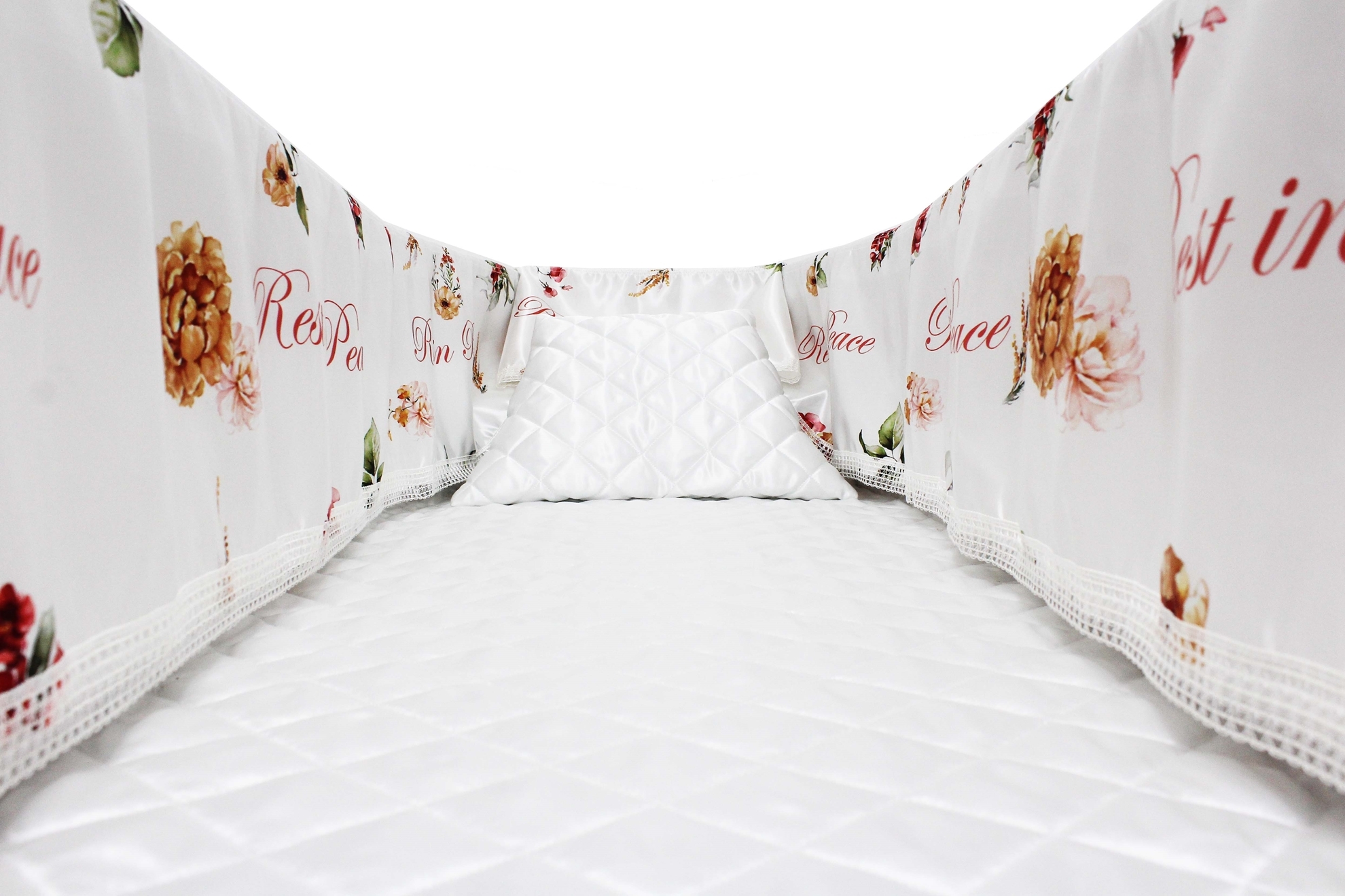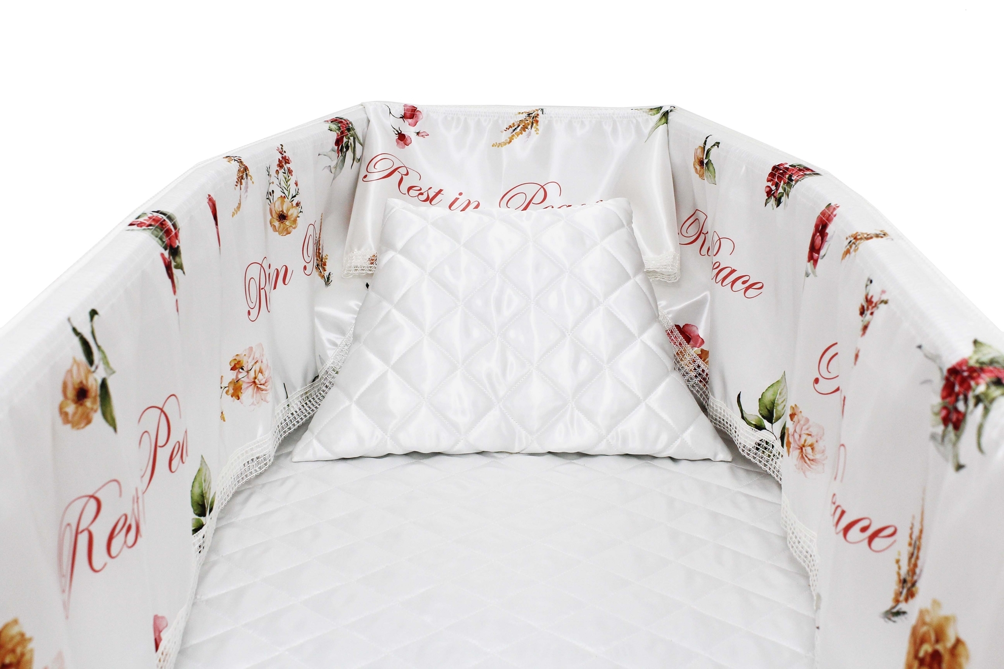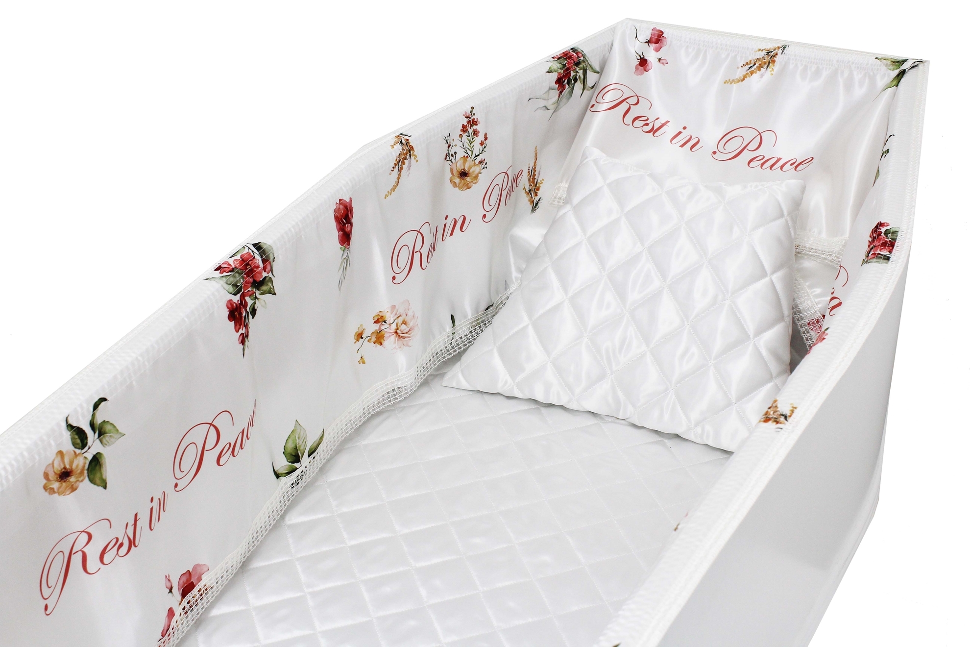12-inch Printed Satin frill to be attached to the lip of the coffin/casket. Please note the image shows a mattress and pillow which are NOT included.