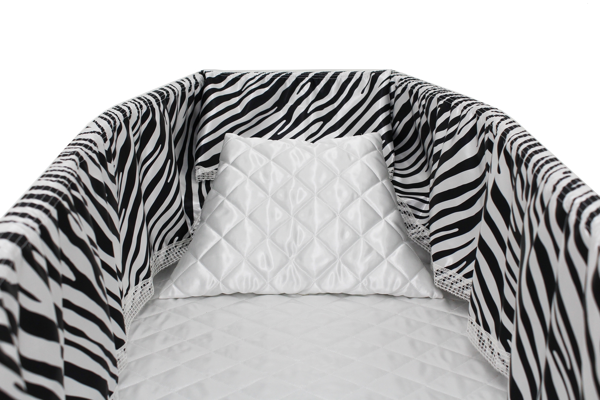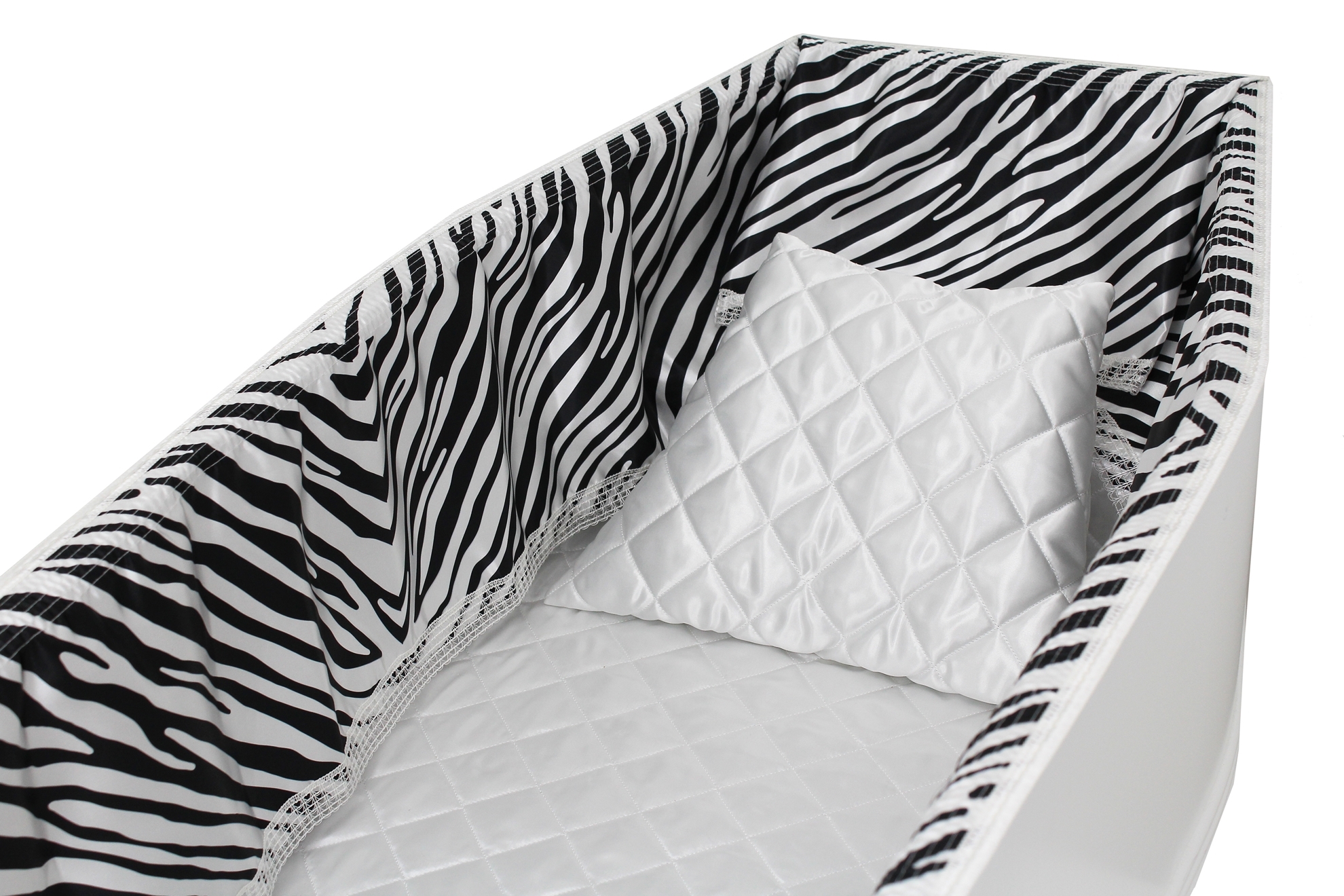 Luxury satin interior printed using water-based ink. The printed interior set consists of a 18-inch 2 Way printed satin frill, printed satin facecloth, quilted satin pillow and a quilted satin mattress.The chosen design will be printed on the interior. Image is to illustrate style of Interior Only.