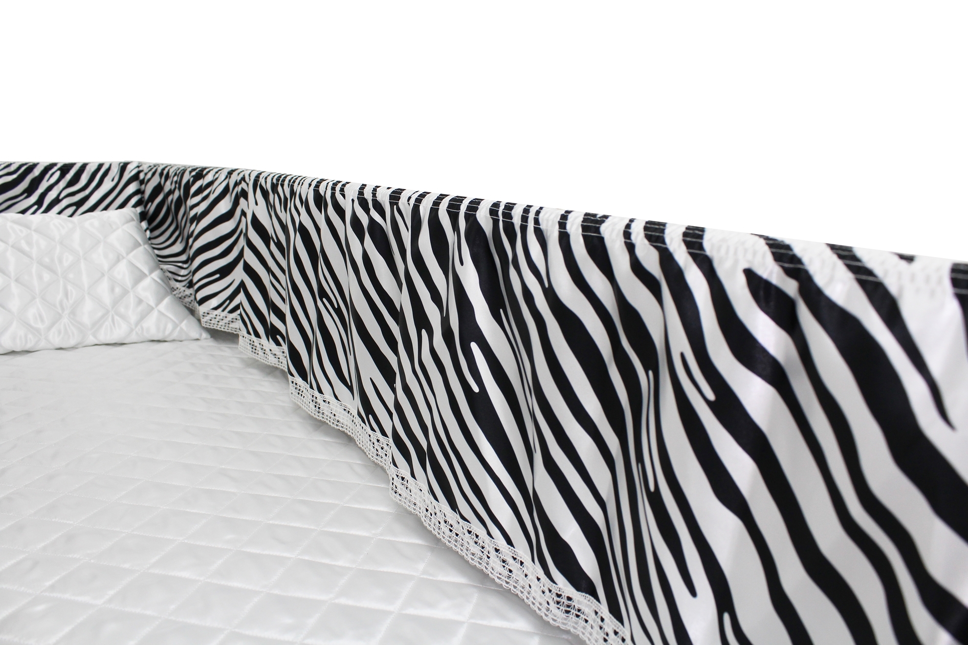 Luxury Satin 18-inch 2-way frill consisting of a 12-inch internal frill with an additional 6-inch exterior frill. The chosen design will be printed on the 18" 2-Way Frill. Please note the image shows a mattress and a pillow which are NOT included. Image is to illustrate style of Interior Only.