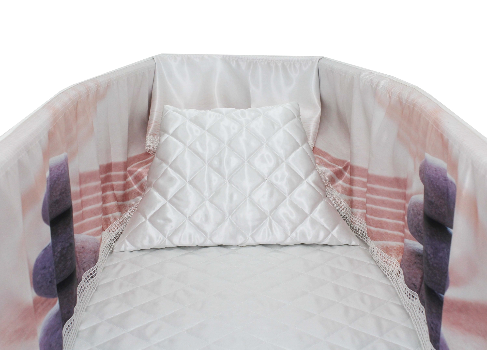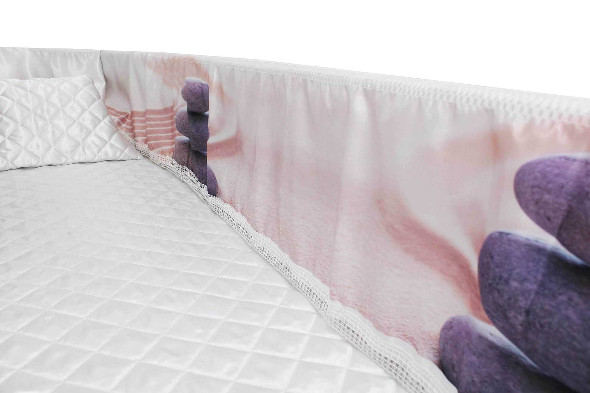 Luxury Satin 18-inch 2-way frill consisting of a 12-inch internal frill with an additional 6-inch exterior frill. The chosen design will be printed on the 18" 2-Way Frill. Please note the image shows a mattress and a pillow which are NOT included. Image is to illustrate style of Interior Only.